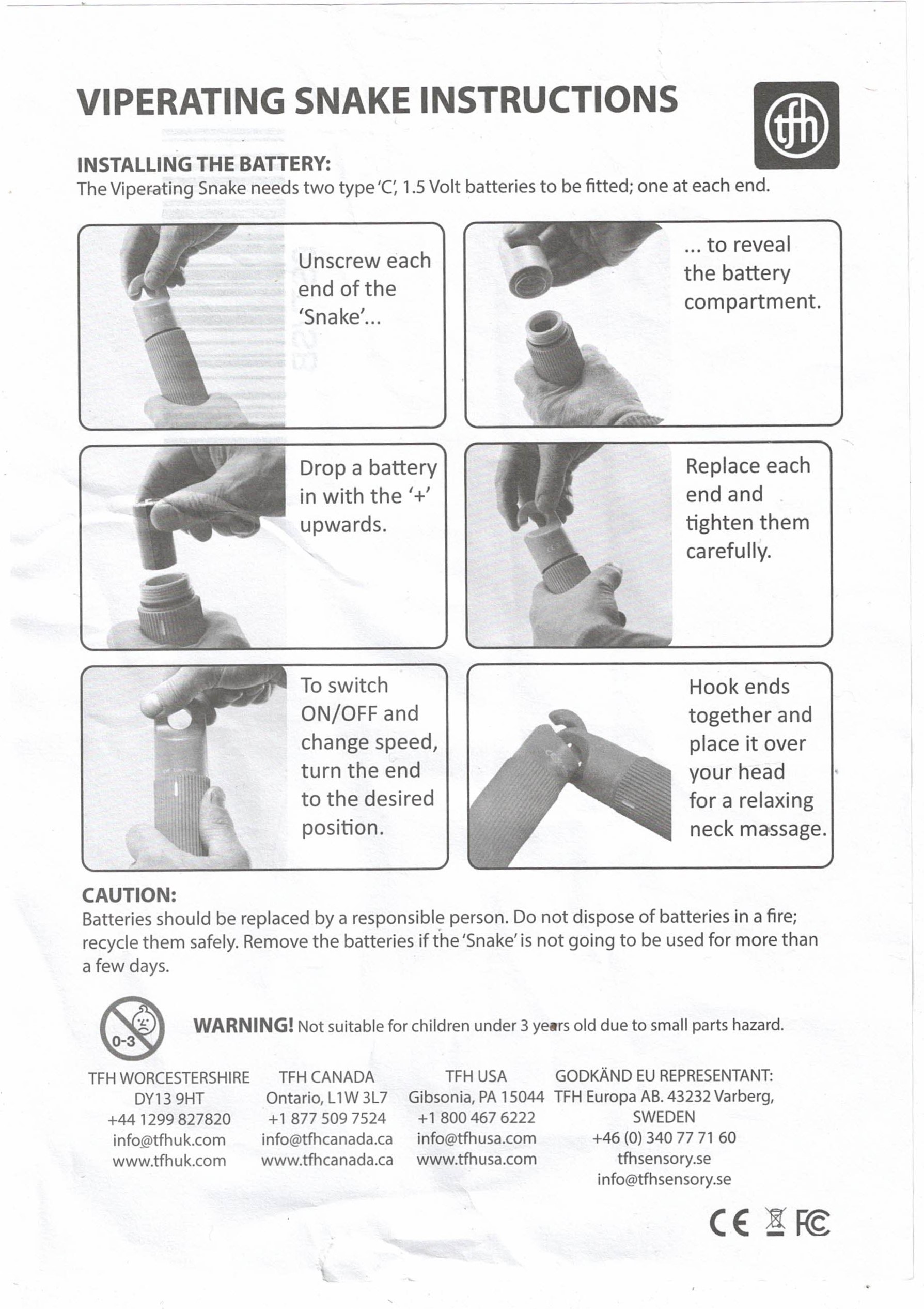 - Der monteres 1 stk. C-batteri i hver ende af vibrationsslangen (batterier medfølger ikke).